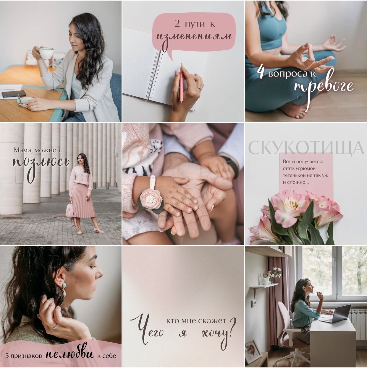С помощью фотографа составили ленту и подобрали шрифты. Юлия научилась транслировать себя через визуал, фактуры, цвета и формы. Эти навыки она может использовать во всех последующих фотосессиях для социальных сетей.